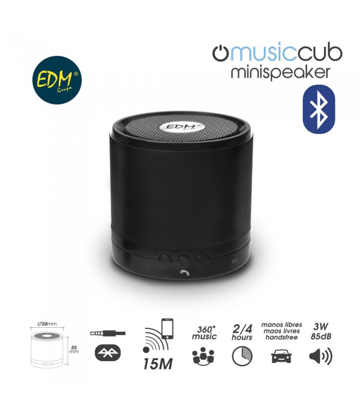 ALTAVOZ BLUETOOTH 3W 85DB Ø 58X55MM400 MAH CONEXION JACK EDM