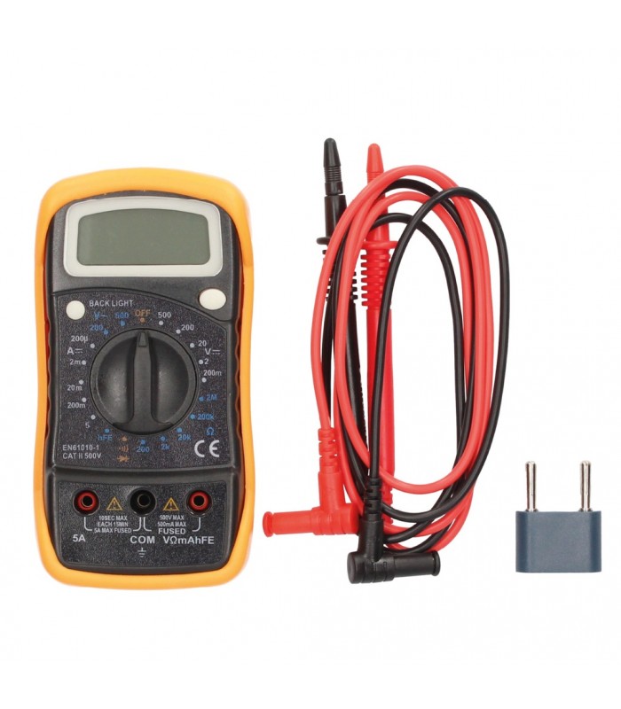 Pila incluida Sí Peso 0.29 Material principal ABS Tipo embalaje Blister Temperatura 0ºC-750ºC Tipo Material Electricista Digital Resistencia 200O / 2MO, ±(0.8%+2) Voltios DC 200mV-600V, ±(0.5%+2) Voltios AC 200V-600V Intensidad DC 2000 µA/10A, ±(1%+2)